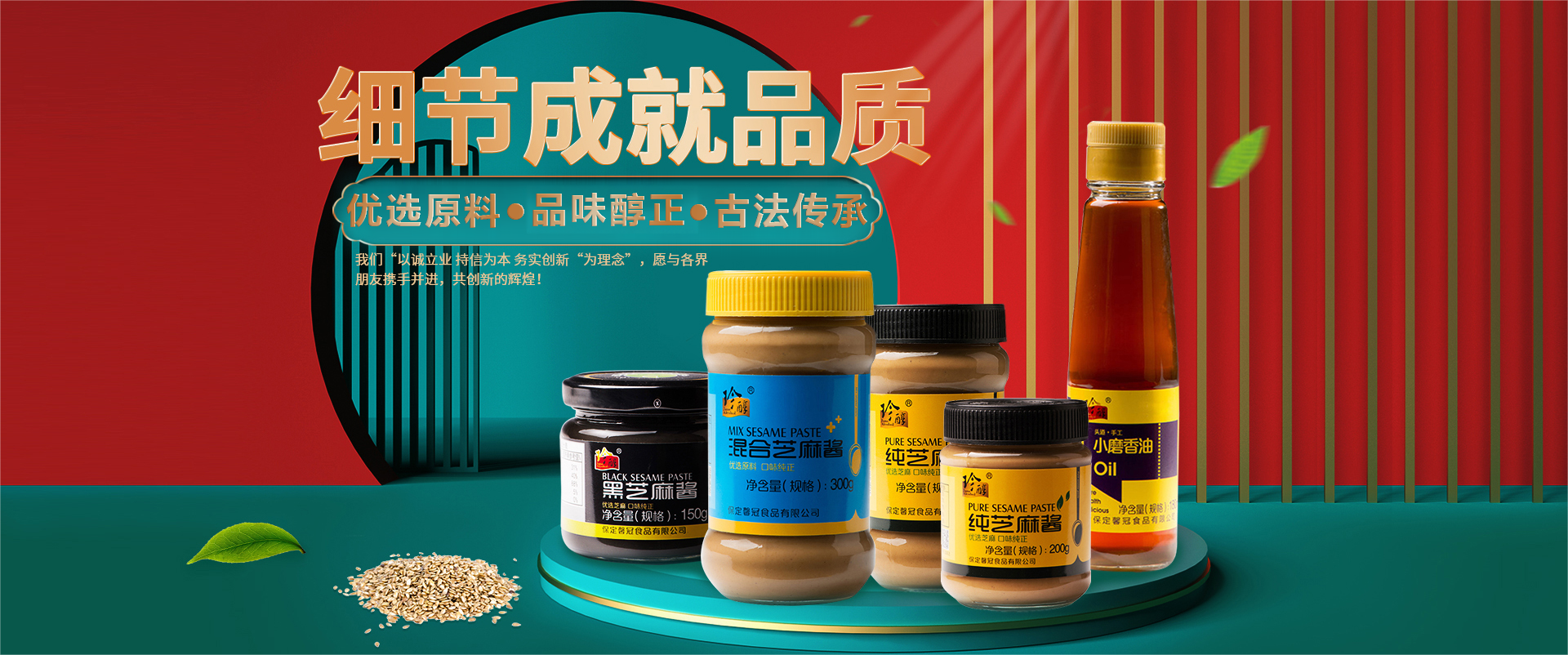 保定馨冠食品有限公司坐落在河北省保定市滿城區李鐵莊村。以“以誠立業 持信為本 務實創新“為理念”。馨冠公司主要品牌“馨冠”“珍醇”“靖王”等注冊商標。公司主營芝麻油、芝麻醬、花生醬三大系列40多個產品。